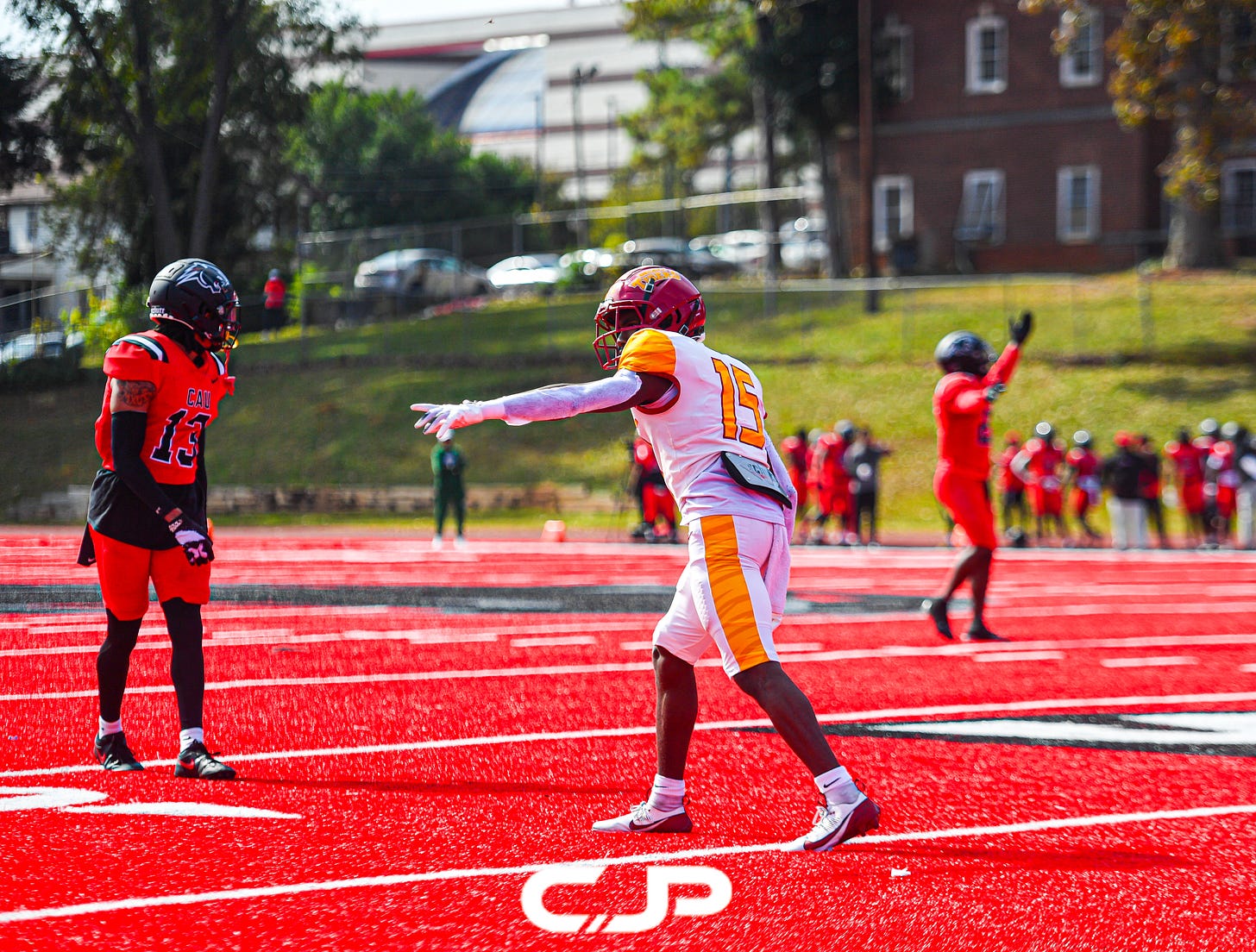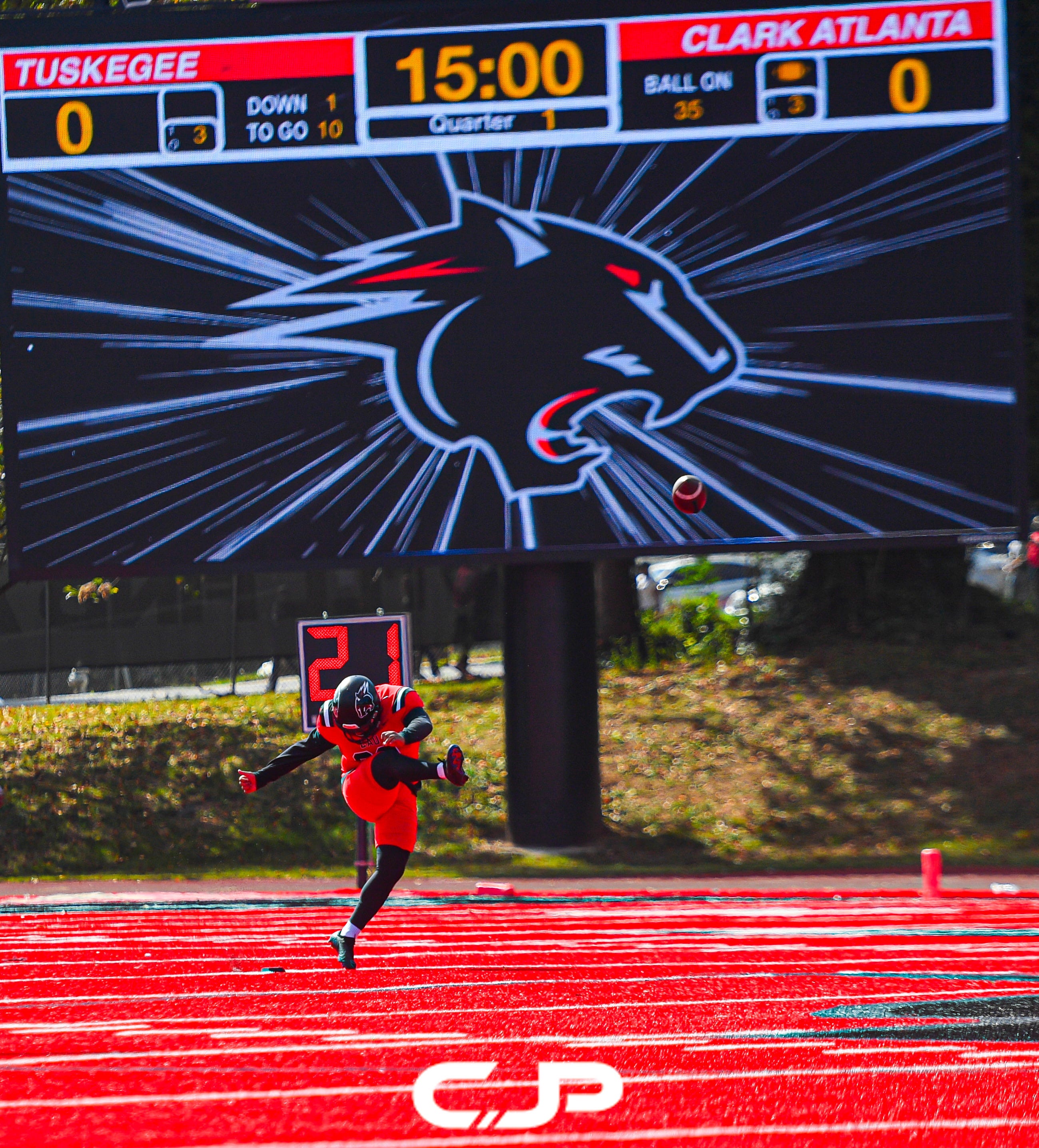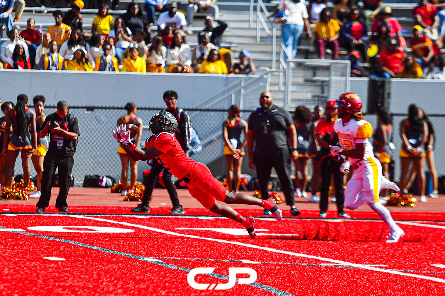 Clark Atlanta University’s bright red turf isn’t just eye-catching—it’s rare. In all of college football, only a handful of programs have ever swapped traditional green for this bold crimson stage, and CAU is the only Division II school in the nation to do it. Shooting a game here was an absolute treat—every play popped against the vibrant backdrop, making each frame feel like it belonged on the cover of a magazine. Follow RED TURF SHOW for GameDay gallery